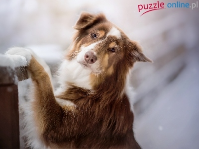 Mordka, Śnieg, Pies, Owczarek australijski, Płot