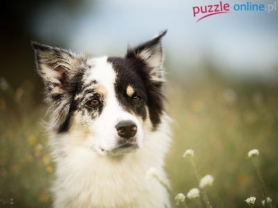 Mordka, Kwiaty, Pies, Border collie, Łąka