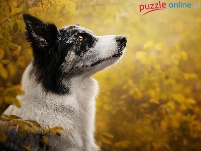 Mordka, Liście, Pies, Border collie, Profil