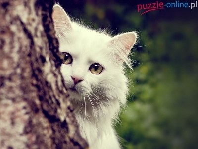 Mordka, Drzewa, Biały, Kot, Pień