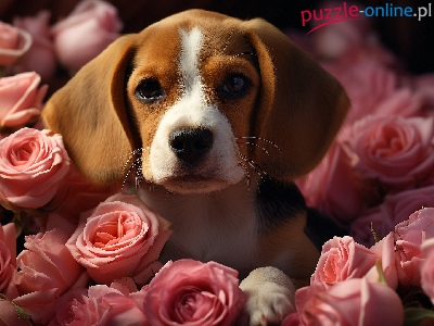 Beagle, Mordka, Pies, Szczeniak, Róże