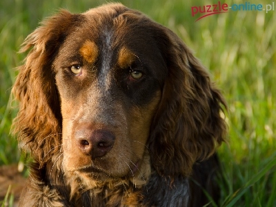 Puzzle Mordka, Spaniel Pikardyjski, Smutna, Zieleń