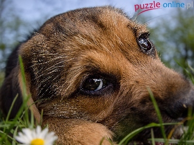 Puzzle Mordka, Pies, Szczeniak, Trawa