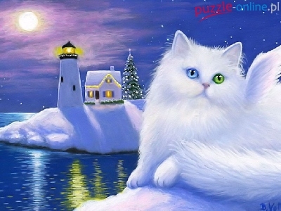 Kot, Morska, Narodzenie, Kolorowe, Boże, Biały, Oczy, Latarnia