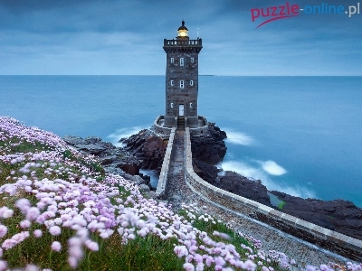Morska, Niebo, Kwiaty, Morze, Latarnia, Droga