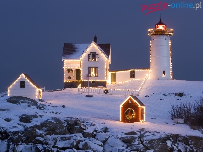 Puzzle Morska, Oświetlona, Latarnia, Lampki
