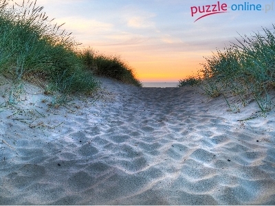 Puzzle Morska, Niebo, Plaża, Trawa