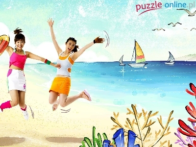 Łodzie, 2D, Plaża, Morze, Dziewczyny