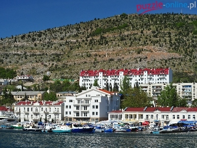 Balaklava, Morze, Wzgórze, Domy, Ukraina, Miasto, Port