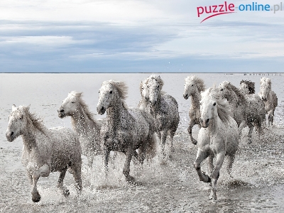 Puzzle Białe, Morze, Konie