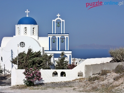 Morze, Grecja, Santorini, Cerkiew, Roślinność