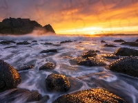 Kamienie, Morze, Góry, Zachód słońca
