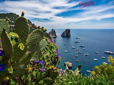 Morze, Włochy, Wybrzeże, Capri, Kaktusy, Skały
