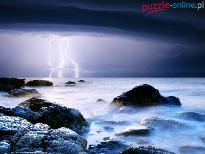 Morze, Piorun, Burza, Kamienie, Noc