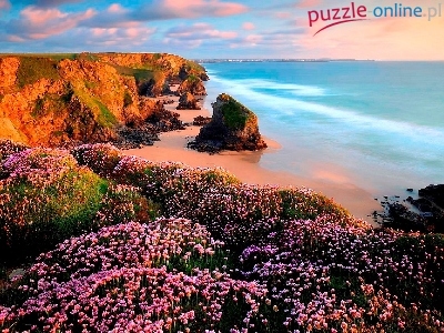 Puzzle Morze, Skały, Kwiaty, Chmury