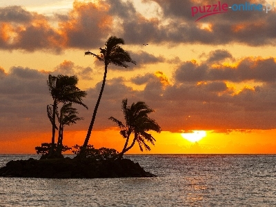 Morze, Słońca, Wysepka, Palmy, Zachód