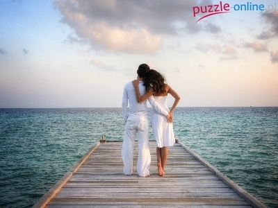 Puzzle Morze, Zakochana, Para, Molo