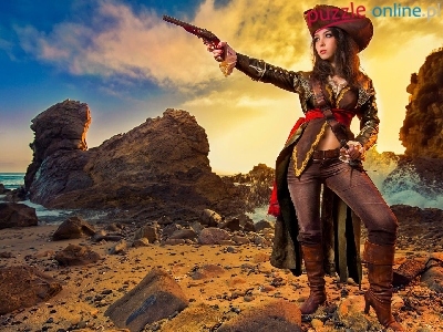 Puzzle Morze, Kobieta, Pirat, Skały