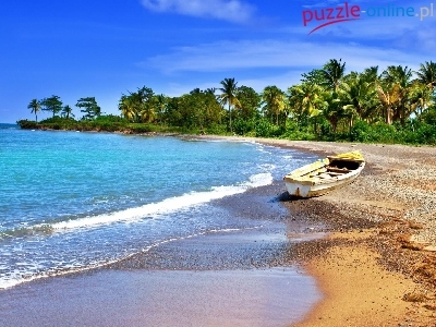 Łódź, Plaża, Cypel, Morze, Palmy