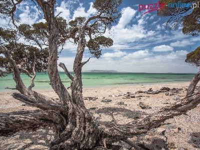 Puzzle Plaża, Morze, Drzewo