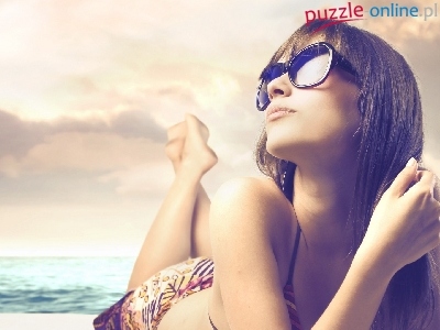 Puzzle Morze, Kobieta, Plaża, Chmury