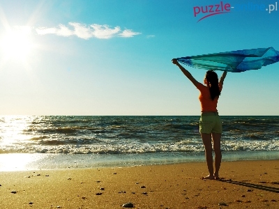 Puzzle Morze, Kobieta, Plaża, Promienie