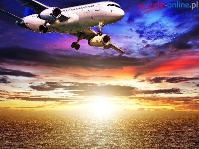 Morze, Słońce, Niebo, Wschód, Samolot, Kolorowe
