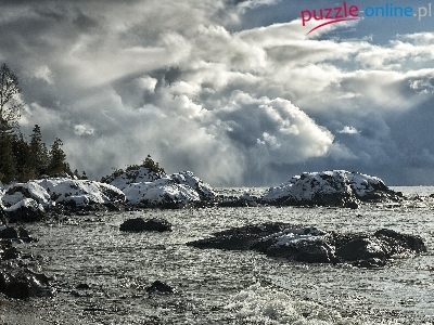 Puzzle Skały, Morze, Zima