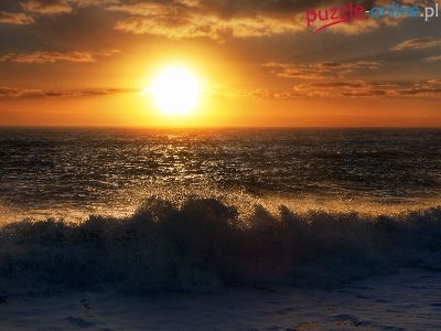 Morze, Zachód, Plaża, Chmury, Słońca, Fale