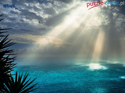 Puzzle Morze, Promienie, Słońca, Palmy