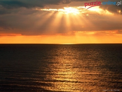 Puzzle Morze, Przebijające Światło, Zachód Słońca, Niebo