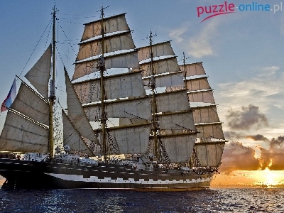 Puzzle Morze, Zachód, Słońca, Żaglowiec