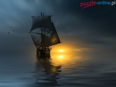 Puzzle Morze, Zachód słońca Żaglowiec