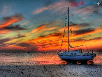 Puzzle Morze, Zachód, Słońca, Żaglówka
