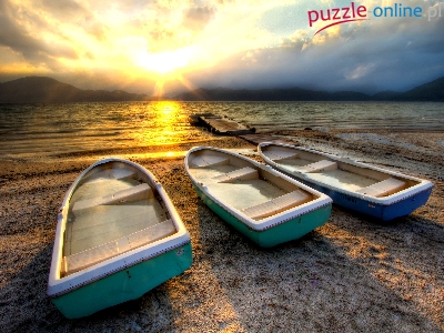 Morze, Łajby, Zachód, Słońca, Plaża