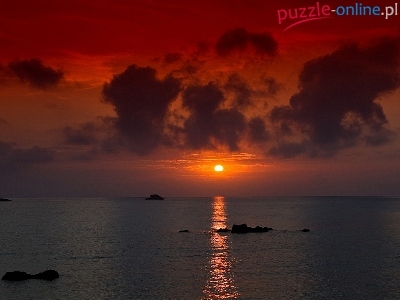 Puzzle Morze, Zachód, Słońca, Chmury