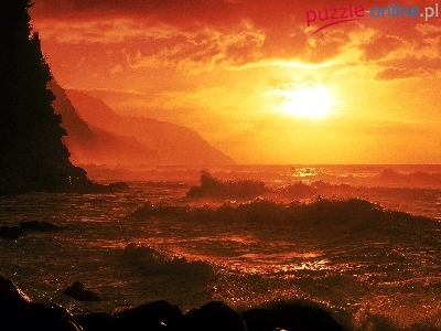 Puzzle Morze, Zachod, Słońca, Fale