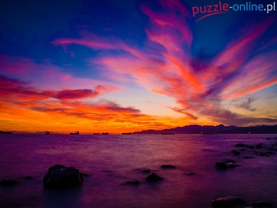Puzzle Morze, Zachód, Słońca, Kamienie