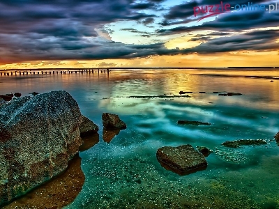 Puzzle Morze, Zachód, Słońca, Kamienie