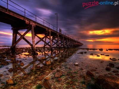 Puzzle Morze, Zachód, Słońca, Molo