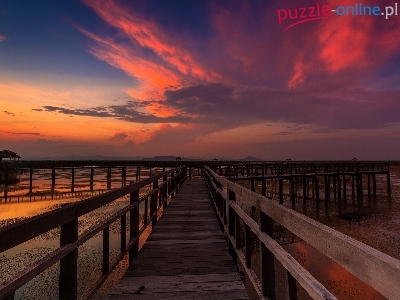 Puzzle Morze, Zachód, Słońca, Molo