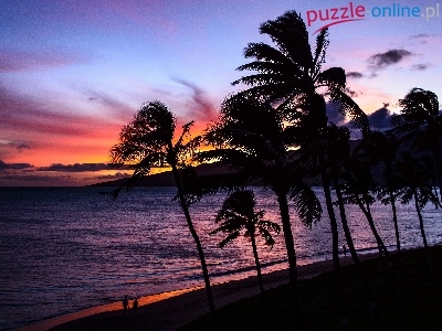 Puzzle Morze, Zachód, Słońca, Palmy