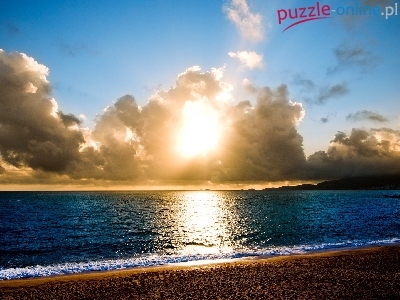 Puzzle Morze, Zachód, Słońca, Plaża