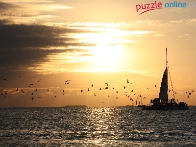 Puzzle Morze, Zachód, Słońca, Ptaki