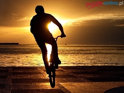 Puzzle Morze, Zachód, Słońca, Rowerzysta