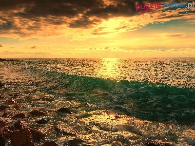 Puzzle Morze, Zachód, Słońca, Skały
