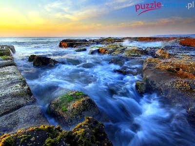 Morze, Zachód Słońca, Skały