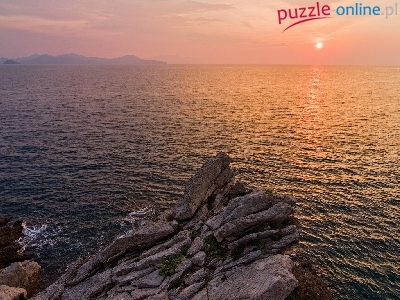 Puzzle Morze, Zachód, Słońca, Skały