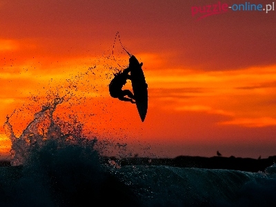 Morze, Surfing, Zachód, Słońca, Mężczyzna