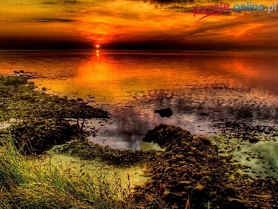 Puzzle Morze, Zachód, Słońca, Wybrzeże
